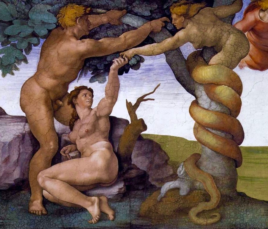 Adam and Eve with the serpent (from Michelangelo’s mural in the Sistine Chapel).
