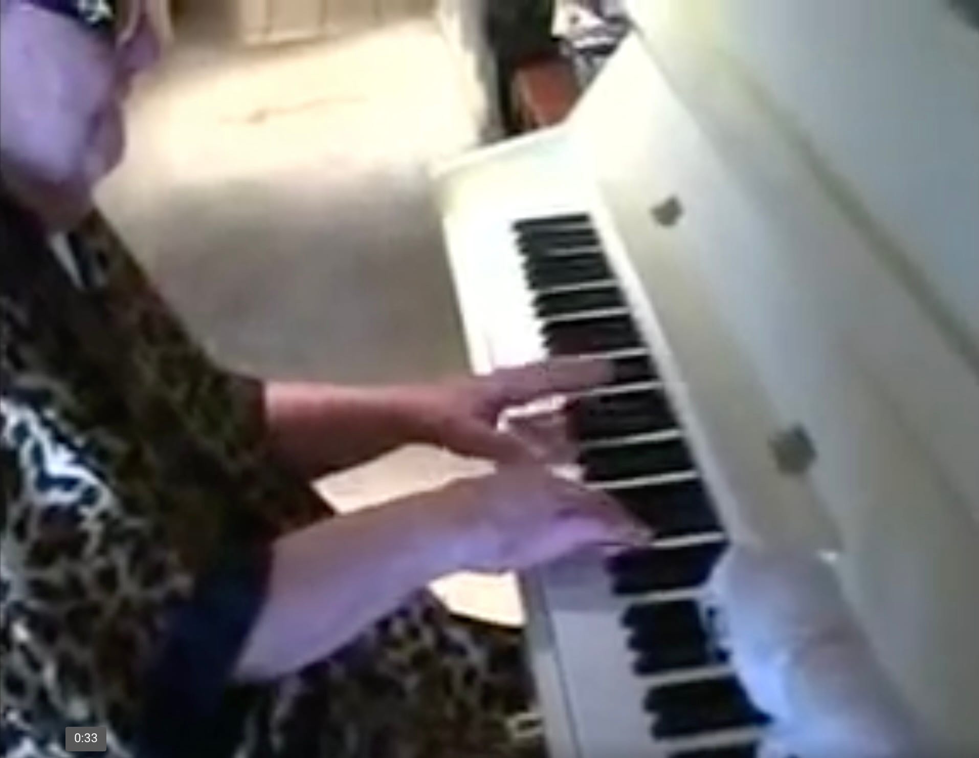 There was just one thing during that time which helped me retain some semblance of sanity, and that was creativity—specifically, music. Her piano was adjacent to the room where she laid in bed, and though she would sometimes sit at the keyboard herself, her energy levels approaching 90 weren’t great, and being blind made it hard for her to hit all the right keys as well as she wanted. But she tried, and the result was sometimes beautiful.