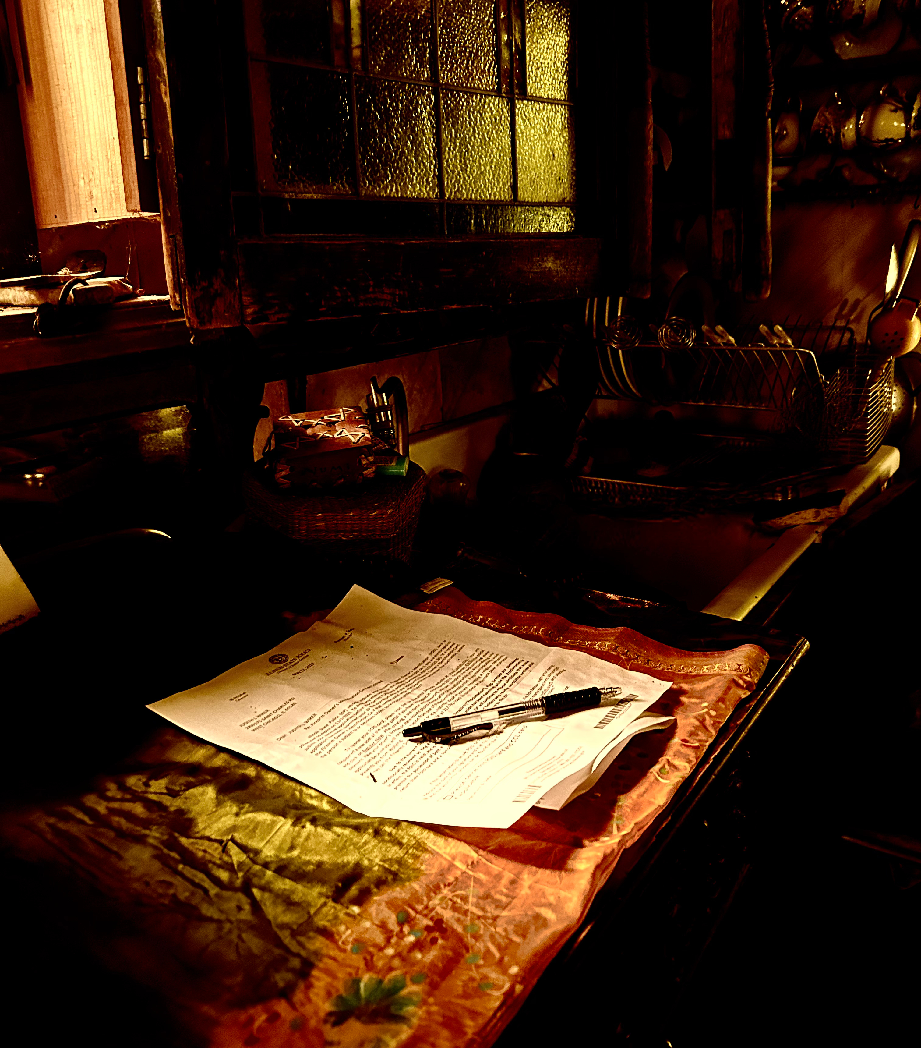 Due to a flaw in the master’s plan, one of the young villager-actors happens to be wandering around in one of the buildings in the village, and stumbles onto a copy of the script the master hypnotist has written for the villagers. The hypnotist carelessly left it in a certain room of that building, and none of the villagers were ever supposed to see it. Leafing through the pages, the villager-actor finds his own role delineated right there before him, with most of his life’s decisions clearly laid out—the kind of work he does, who he marries, his triumphs and tragedies. Also shocking is the experience of thumbing forward a bit in the script and seeing the major actions and lines of dialogs he is personally set to deliver in the days ahead, in exactly the ways he himself had roughly planned.